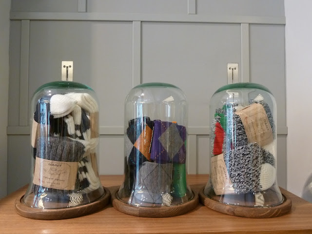 Yesterday and today I was invited to do the transition of the seasons of the GANT Flagship Store in Antwerp, Belgium. It's incredible that just today the temperature rises above 25 degrees C (or high 70F), but okay the collection is in and the Sale is over, so get over it. The Mainline collection is divided in 3 themes Royal Eccentric, which is the biggest part with lots of preppy designs and colors. Christmas in Vermont with some good old "workwear" as pictured above and an Aspen Ski theme.
