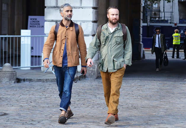 Tommy Ton shot the guys in the streets of London and as you can see they all us a tan color in their outfit. As per Wikipedia "Tan is a pale brownish, tawny shade of brown. The name derived from tannum (oak bark) used in the tanning of leather. The first recorded use of tan as a shade name in English was the year 1590" So now you know get yourself a tan!